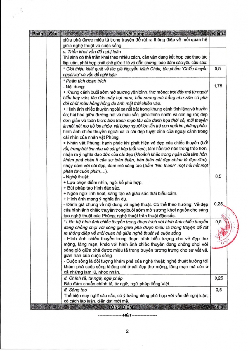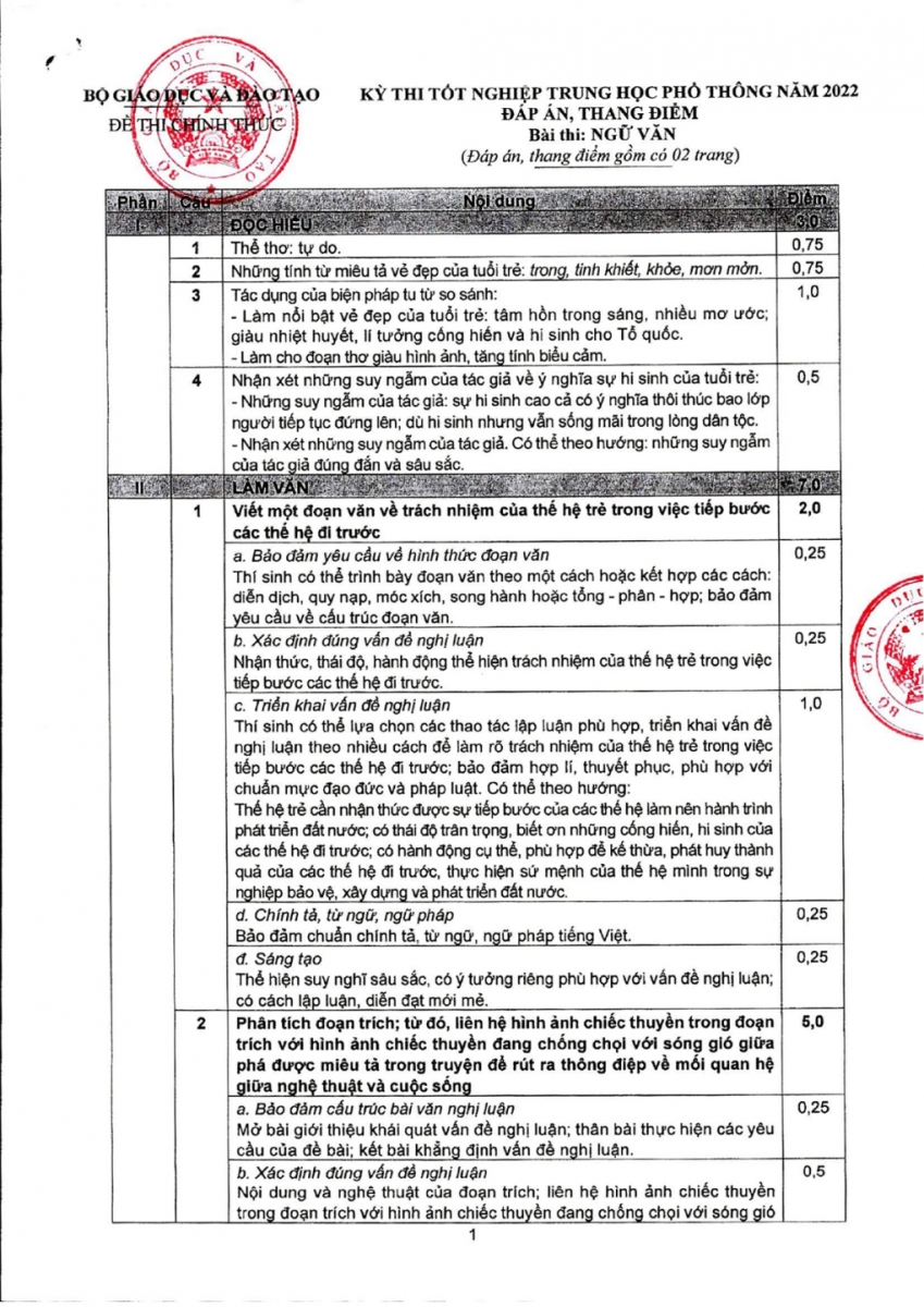 Đáp án và thang điểm: